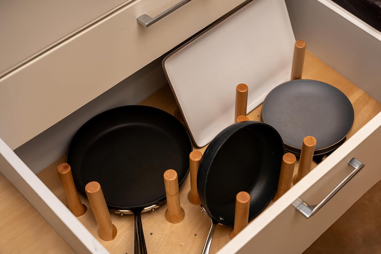 Custom Pegboard Drawer Organizer – Maple Wood – Deep Drawer Insert, Divider for Pots, Pans, Lids & Trays - Kitchen Cabinet Storage - No Cutting or Tools Needed – Made in USA