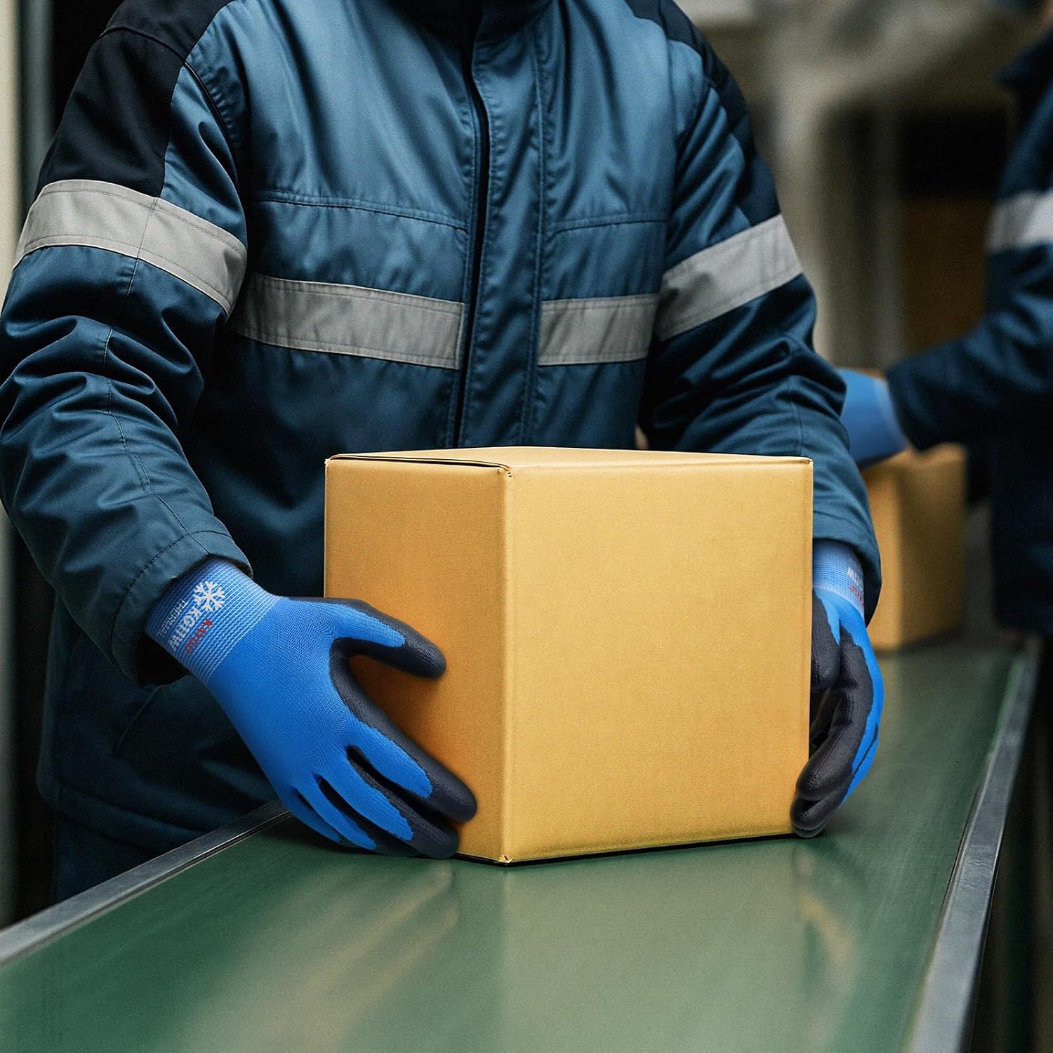 KAYGO Winter Work Gloves for Men and Women, 12 Pairs Thermal Insulated Safety Work Gloves PU Coated, Smooth Grip on Palm & Fingers,Ideal for Freezer Work,Blue,L