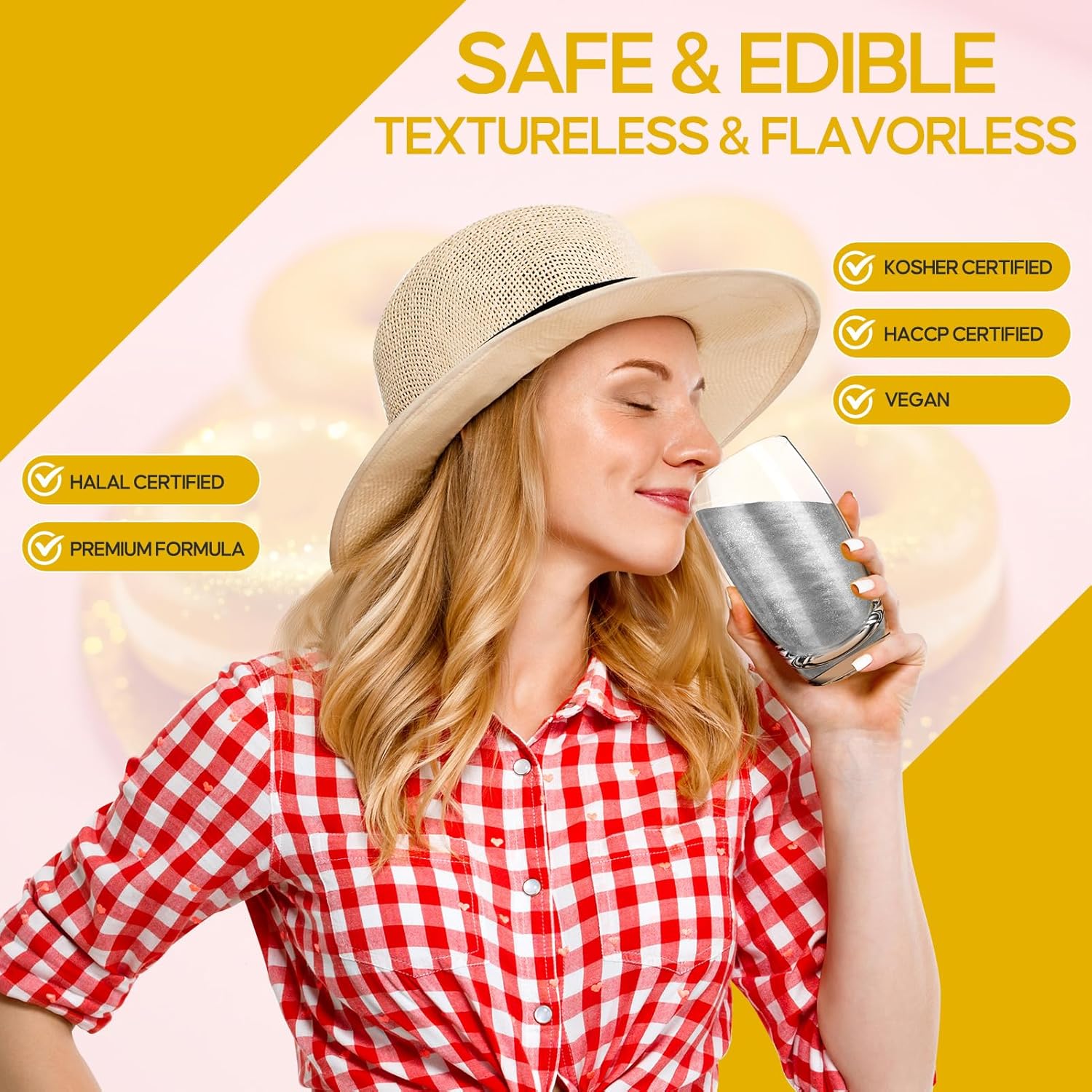 - Food-Safe & Allergen-Free Sparkle - Crafted with certified food-grade ingredients. Gluten-Free, Nut-Free, Dairy-Free & Vegan Friendly. Enjoy tasteless, odorless sparkle that won't alter your food or drink's flavor or texture. Decorate with confidence!