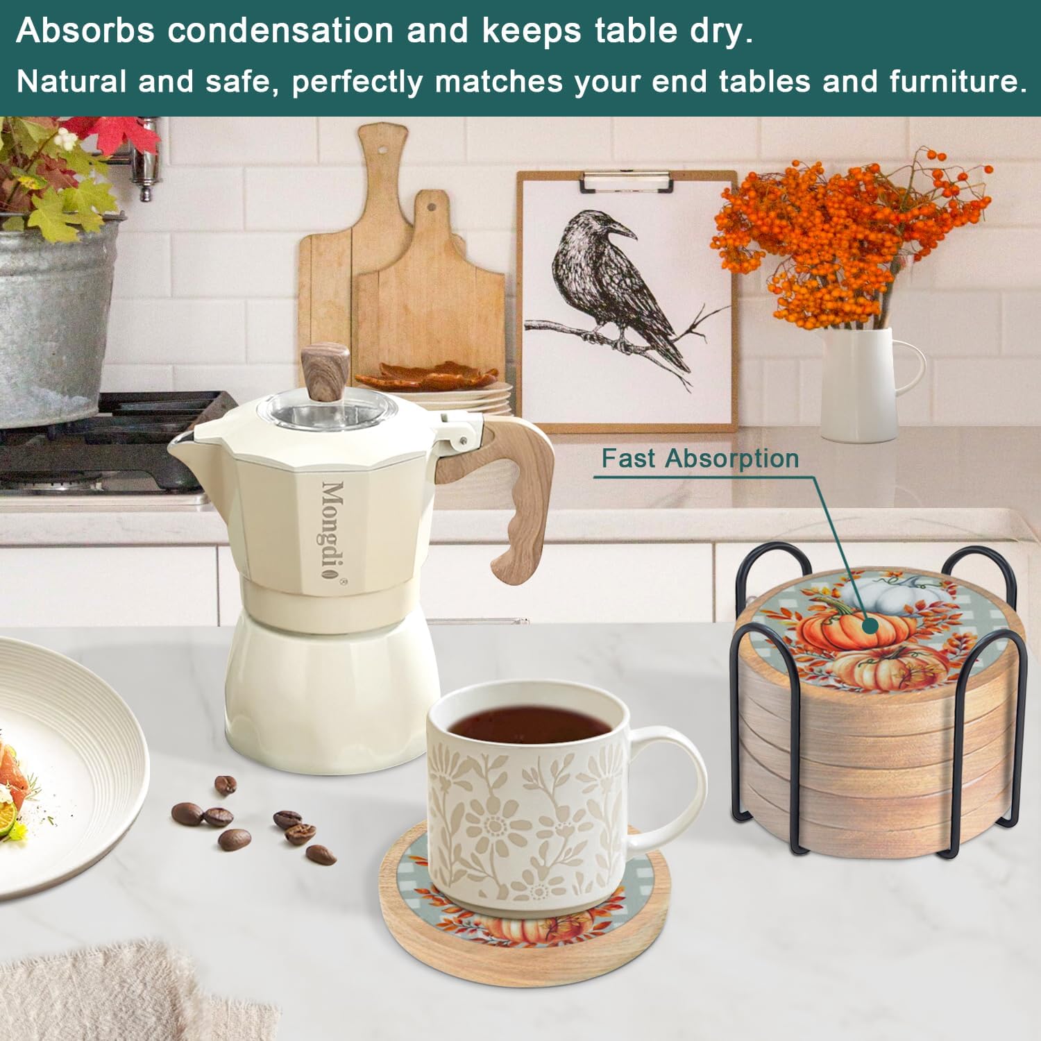 - 🎁Super Absorbent Coasters: Farmhouse coasters with built-in thickened felt pads for stronger water absorption and heat insulation, capture liquids quickly were prevent any spills, keeping your tabletop clean and tidy, with no stains and water rings; extra large size easily accommodates cups of all sizes.