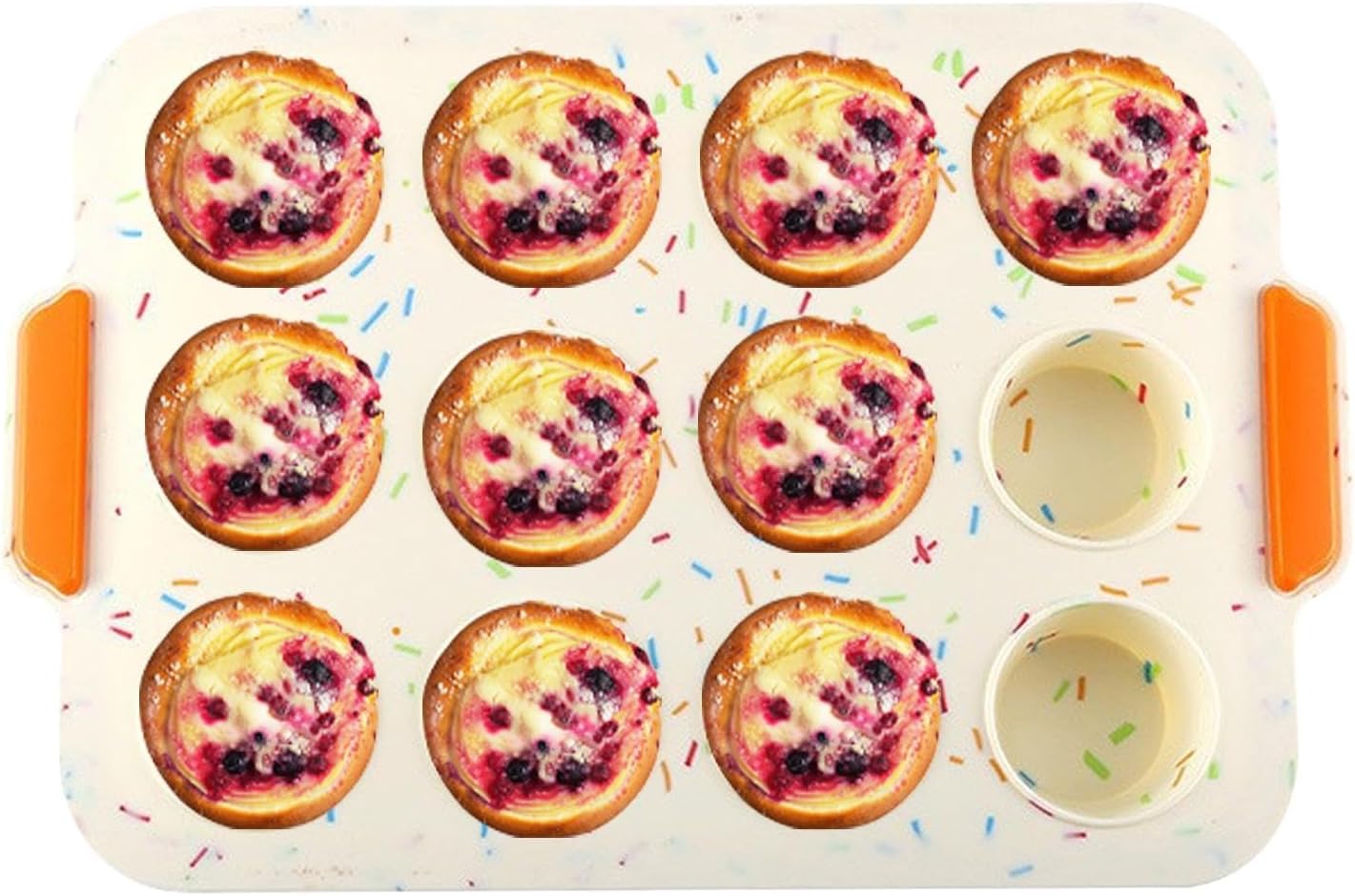 - 【SAFE MATERIAL】The muffin pan is made of food-grade silicone, which is safe to use, eco-friendly, healthy and odorless, soft, durable, not easy to break or deform, reusable, high and low temperature resistant.