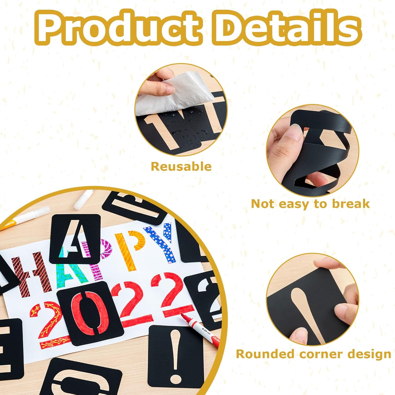 - 【Rich packaging content】You will receive a total of 42 stencils for crafts reusable: 26 uppercase letters, 10 numbers and 6 symbol templates. From simple logos to complex works of art, this set of templates can help you turn any DIY art idea into reality.