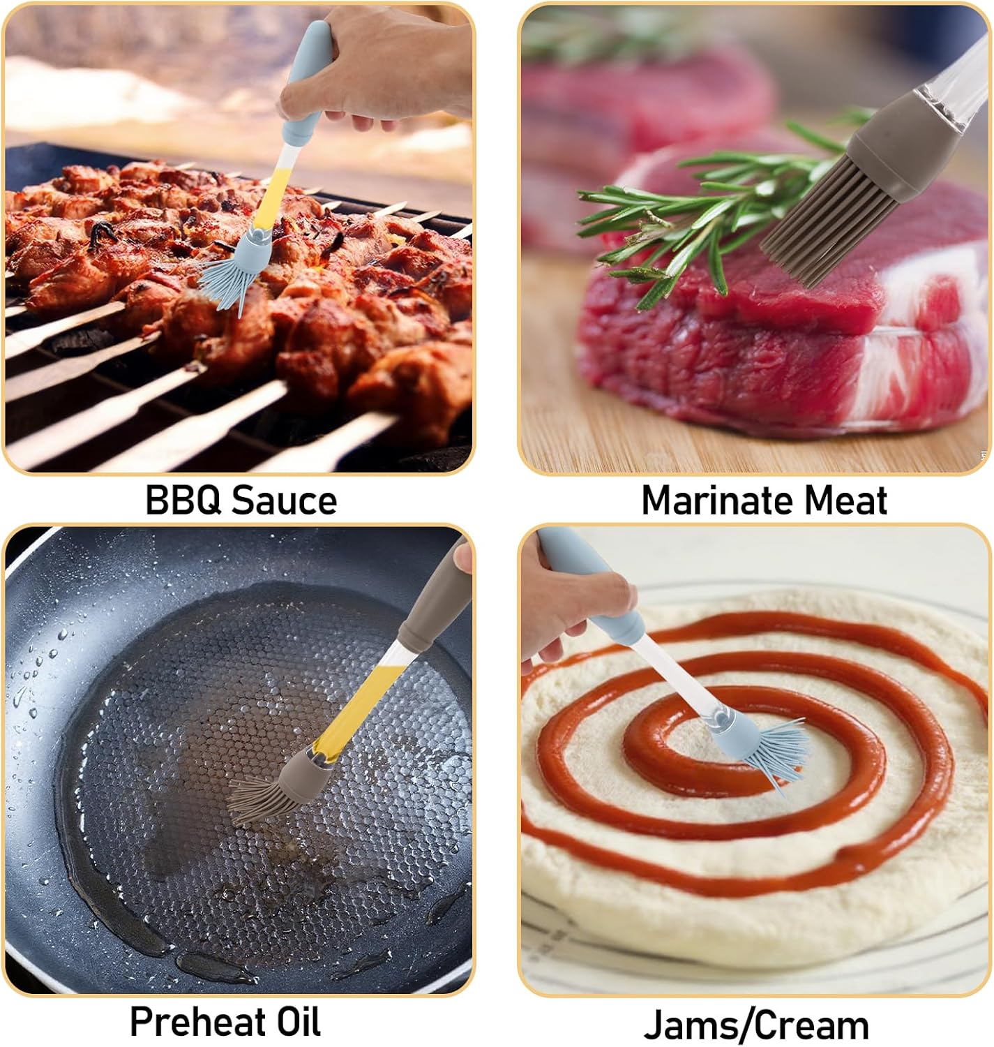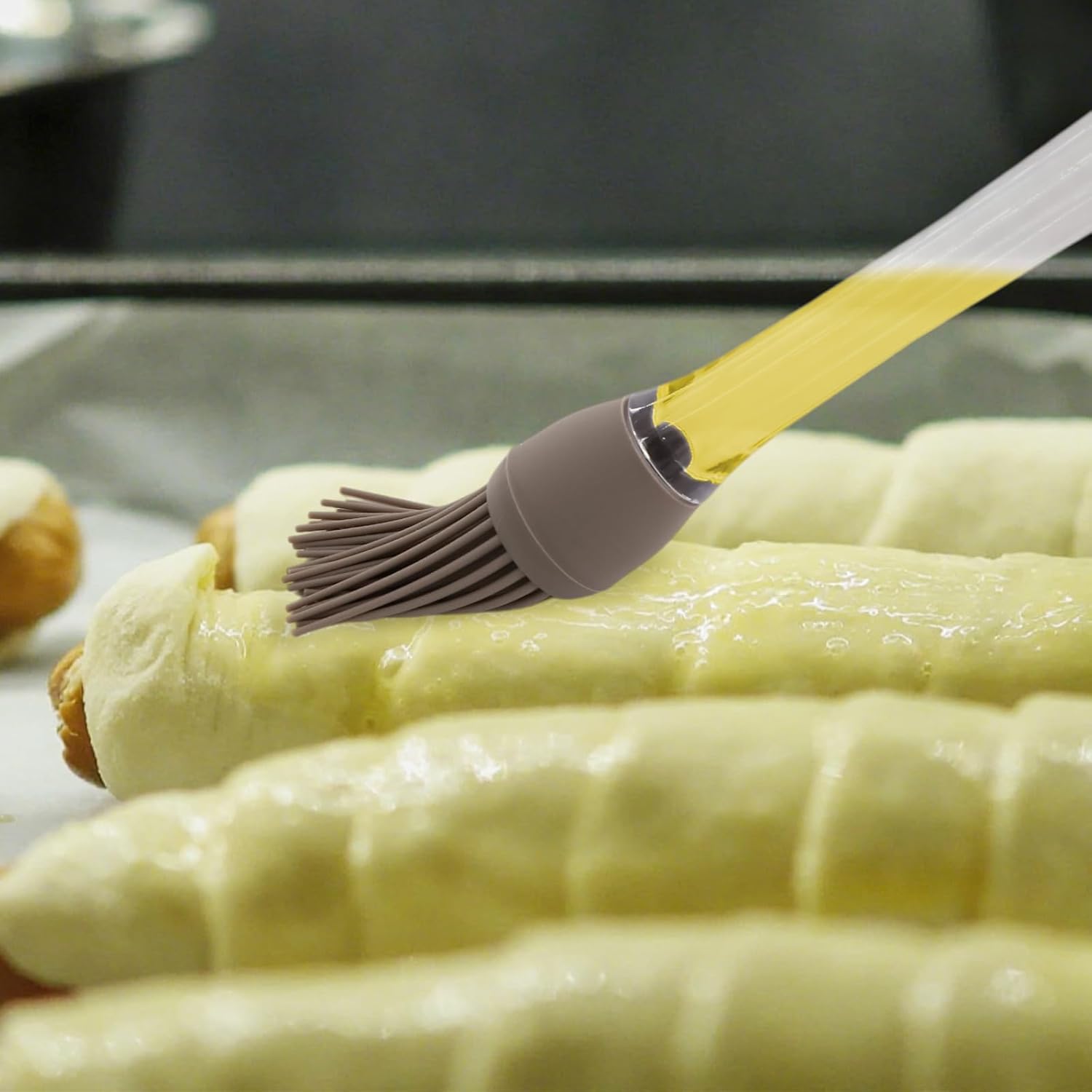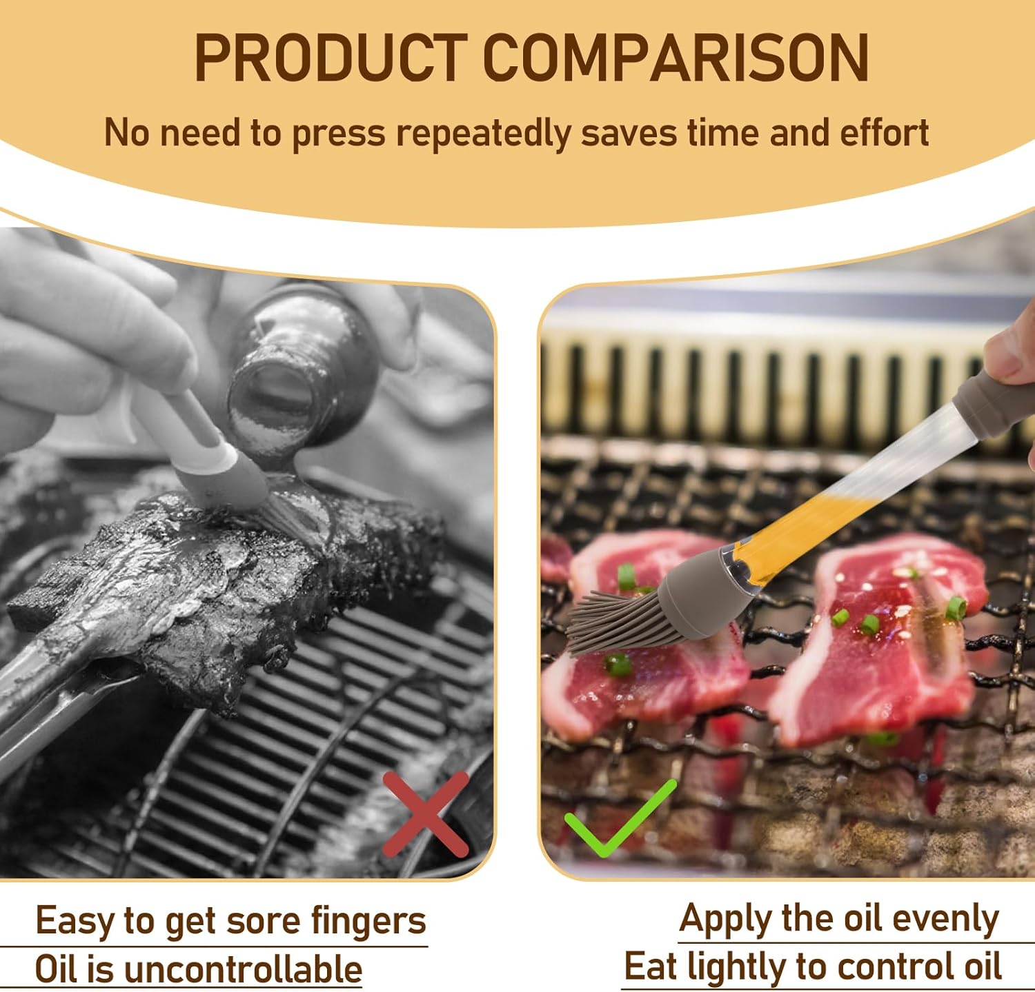 - Integrated Oil Filling System: This pastry brush for baking has a built-in oil reservoir (hollow handle) for easy storage and distribution of liquid seasonings. You only need to dip the brush head into the oil and press the top of the silicone to absorb it. No need to dip it repeatedly. Kitchen brush for cooking can make your cooking process smoother and more efficient.