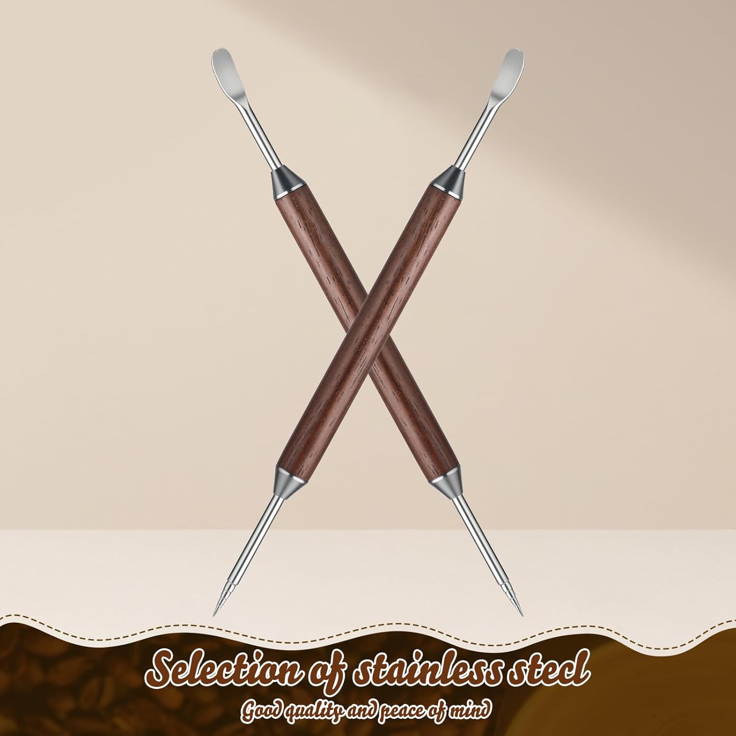 2pcs Latte Art Pen, Double-Ended Stainless Steel Barista Tools with Black Wood Handle, Professional Coffee Art Pen for Home Cafe Espresso Designs, Barista Accessories