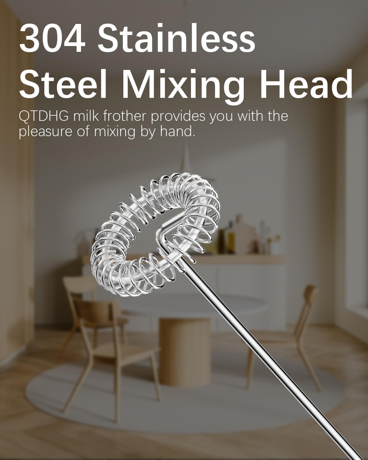 - Simple Operation: Place the whisk of the QTDHG milk frother into the container filled with milk or liquid, then move the button down to start frothing and move it up again to stop working.