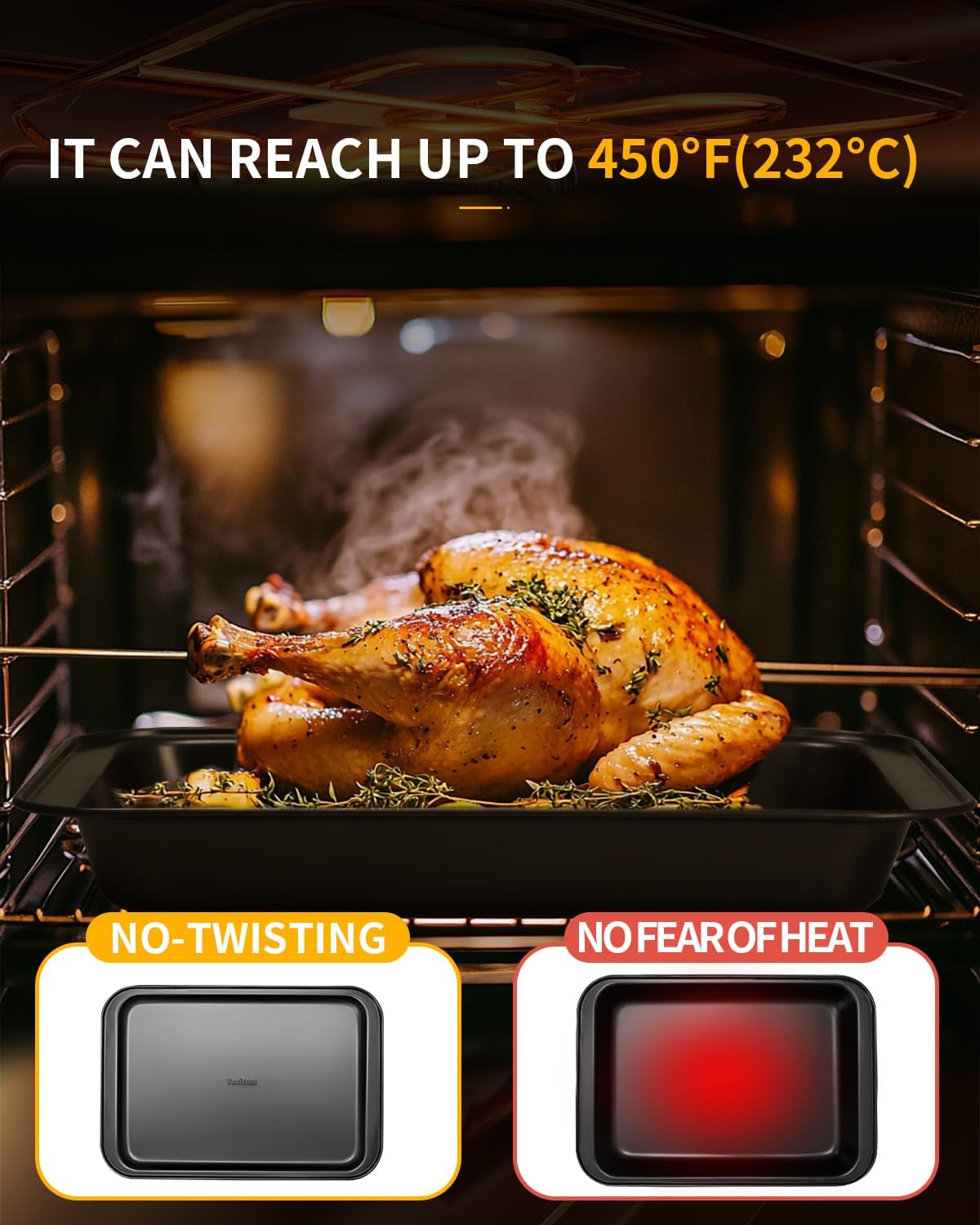- DURABLE & OVEN SAFE – Made of heavy-duty 5mm carbon steel, withstands temperatures up to 450°F(232°C) for versatile use in standard/convection ovens, plus fridge/freezer safe