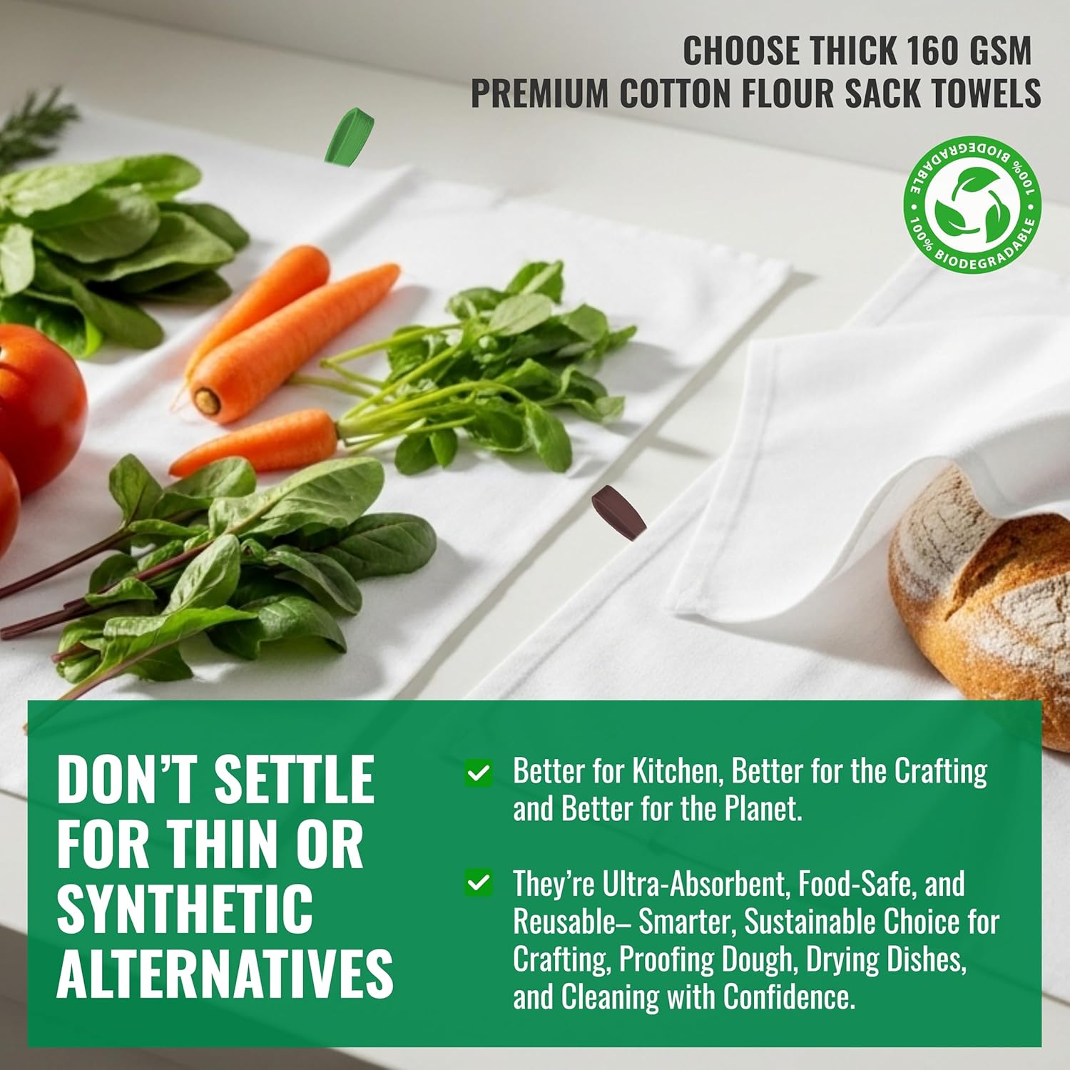 - PREMIUM QUALITY COTTON: Made from 100% natural cotton for superior softness, absorbency, and durability. These towels are gentle on hands and tough on messes — perfect for everyday kitchen use.