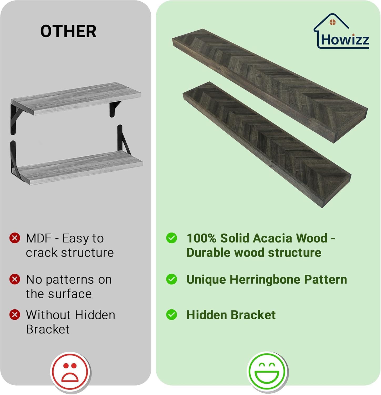- ✅[𝐏𝐫𝐞𝐦𝐢𝐮𝐦 𝟏.𝟓" 𝐀𝐜𝐚𝐜𝐢𝐚 𝐖𝐨𝐨𝐝]: Made from 100% acacia wood with a striking chevron finish, these shelves boast exceptional durability and timeless design to complement any decor.