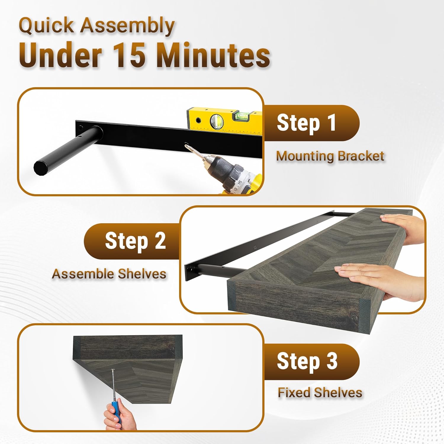 - ✅[𝐈𝐧𝐯𝐢𝐬𝐢𝐛𝐥𝐞 𝐒𝐮𝐩𝐩𝐨𝐫𝐭, 𝐋𝐚𝐬𝐭𝐢𝐧𝐠 𝐒𝐭𝐚𝐛𝐢𝐥𝐢𝐭𝐲]: Hidden metal brackets deliver a seamless floating look while ensuring secure, sag-free mounting. Perfect for heavy-duty use in any room.