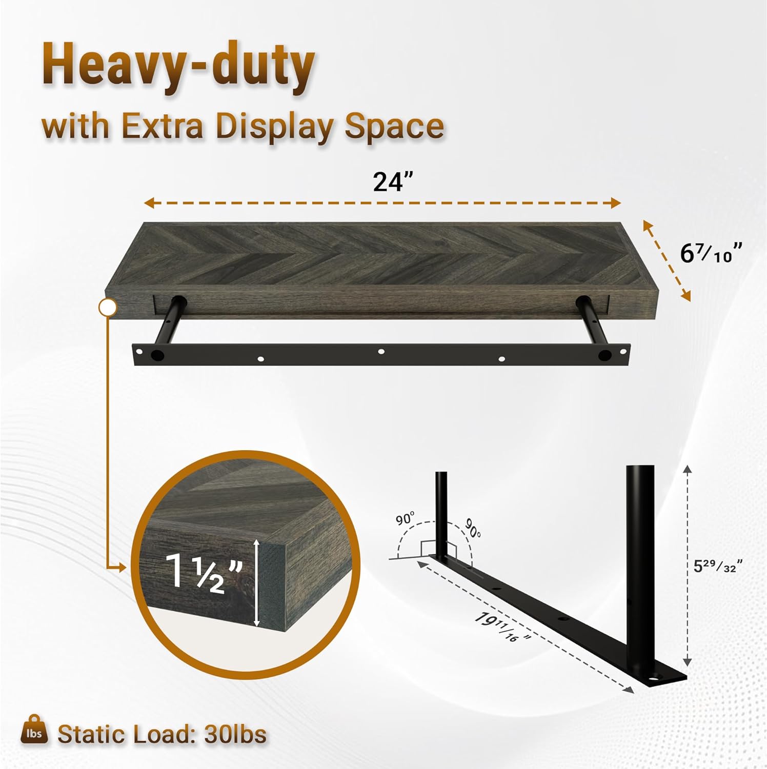 - ✅[𝐏𝐫𝐞𝐦𝐢𝐮𝐦 𝟏.𝟓" 𝐀𝐜𝐚𝐜𝐢𝐚 𝐖𝐨𝐨𝐝]: Made from 100% acacia wood with a striking chevron finish, these shelves boast exceptional durability and timeless design to complement any decor.