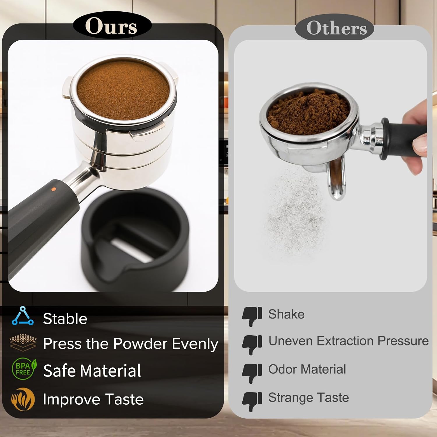 - [Usage Tips]: With its compact design that prevents wobbling during tamping, the base can be easily detached from portafilter by pressing down with one hand.
