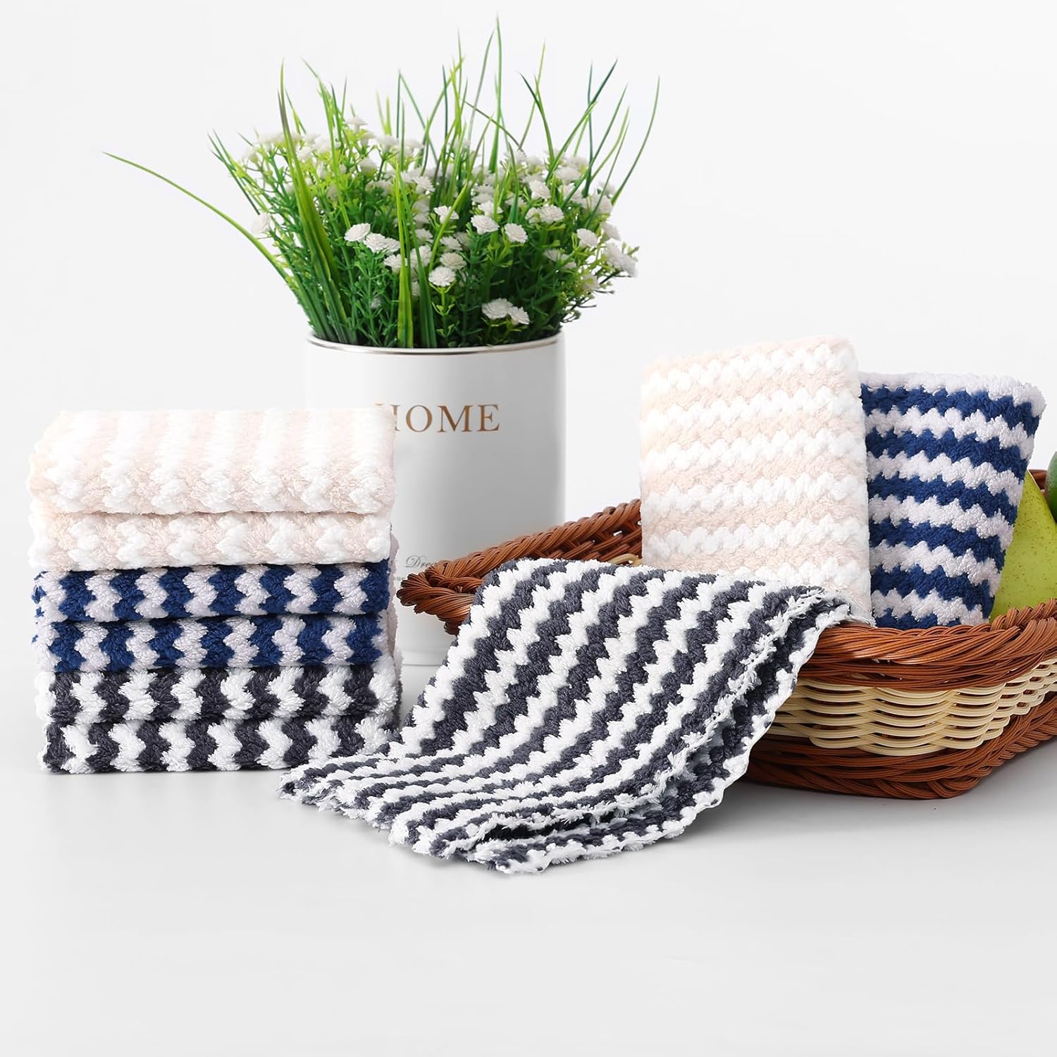 Homaxy 18 Pack Kitchen Dish Cloths, Ultra Soft and Absorbent Dish Towels, Reusable Fast Drying Microfiber Cleaning Cloth, Coral Velvet Wave Design No-lint, 10 x 10 inches, Dark Grey/Navy Blue/Beige