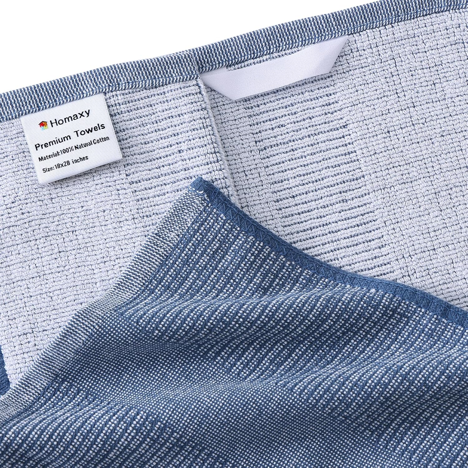 Homaxy Premium Kitchen Towels(18”x 28”, 12 Pack), Large Cotton Kitchen Hand Towels, Flat and Terry Dish Towels, 380 GSM Highly Absorbent Tea Towel Set with Hanging Loop, Navy Blue