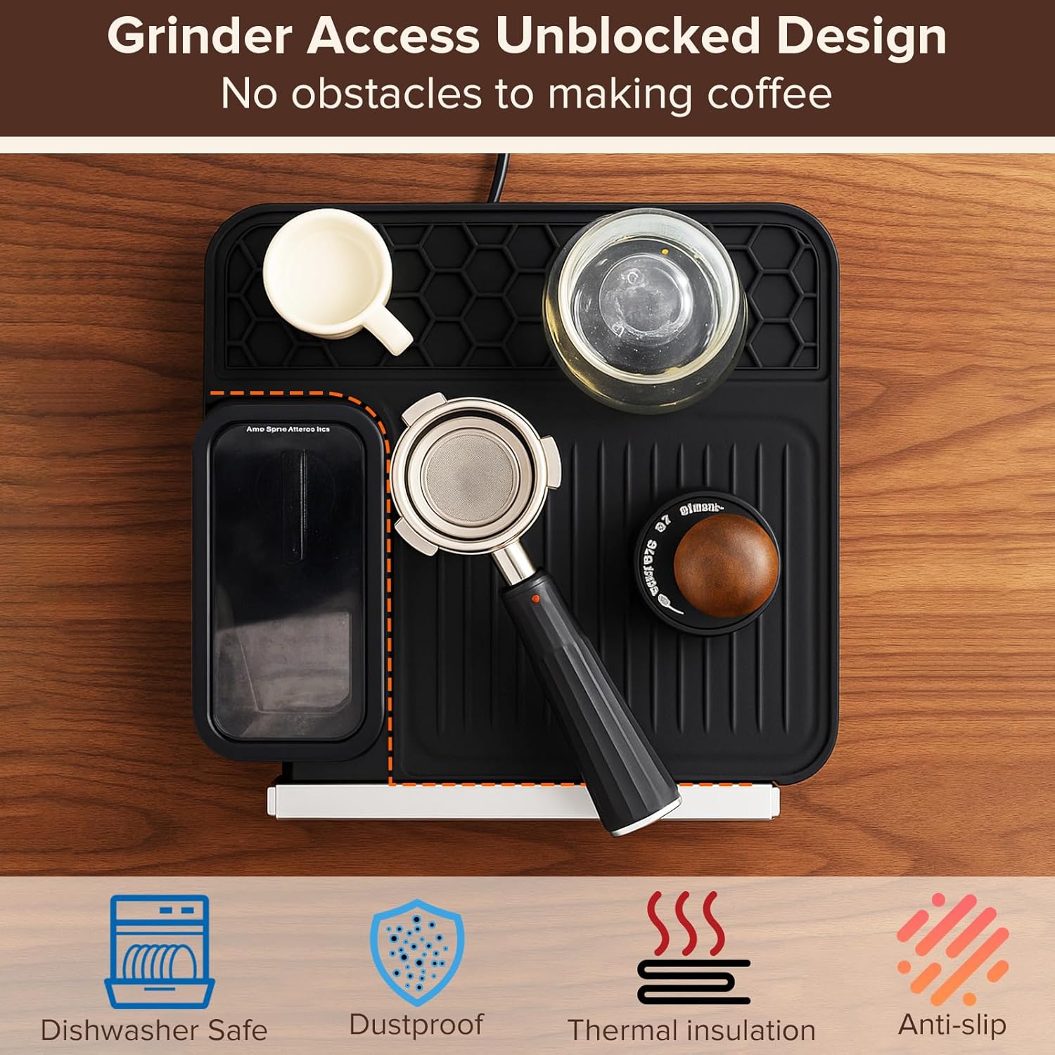 - [Easy to Clean, Saves Time]: The waterproof and smooth surface makes cleanup effortless. Spilled coffee, water, or grounds can be wiped away in seconds—no more scrubbing or stubborn messes. Designed for busy coffee lovers, this top mat helps you maintain a spotless coffee corner while saving valuable time in your daily routine.