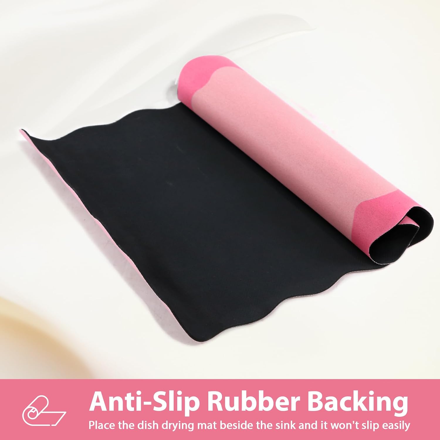 - Scalloped & Cute Design: Pleae clean it according to our instruction in picture before using our scalloped dish drying mat. Please refer to the size chart to see the size. The size is measured from the scalloped edge. Our scalloped cute dish drying mat gives the best expression to the aesthetics. It can not only be used as a coffee mat, but also as a door mat, placemat, mouse pad, pet mat and even can be as a decoration for the kitchen and home, adding bright colors to your home