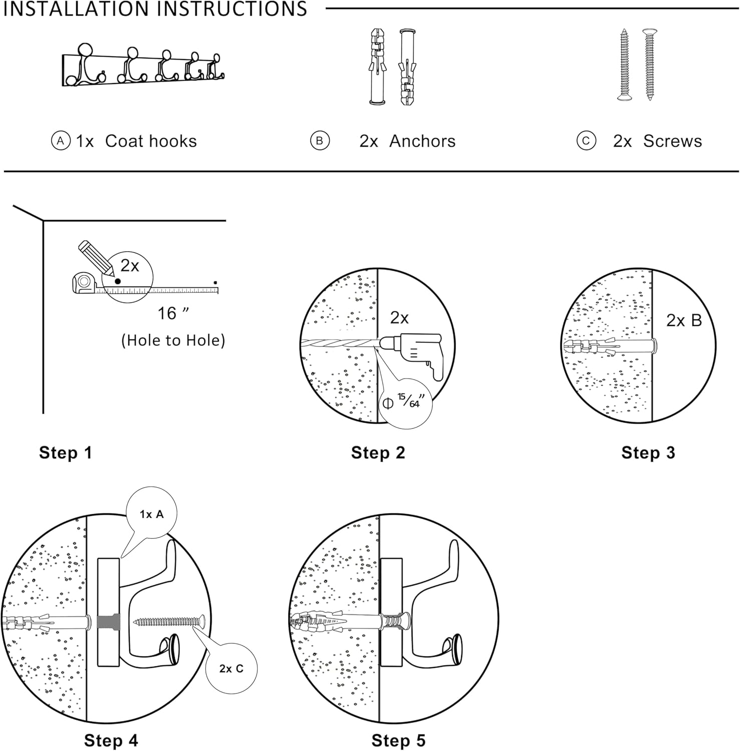 - 【Sturdiness & Large spacing】Solid wall mount coat rack with 5 triple hooks, hang 5 or 10 jackets per rack. Plenty of space to support clothes, bags, and pet supplies, making it perfect for apartment or room.