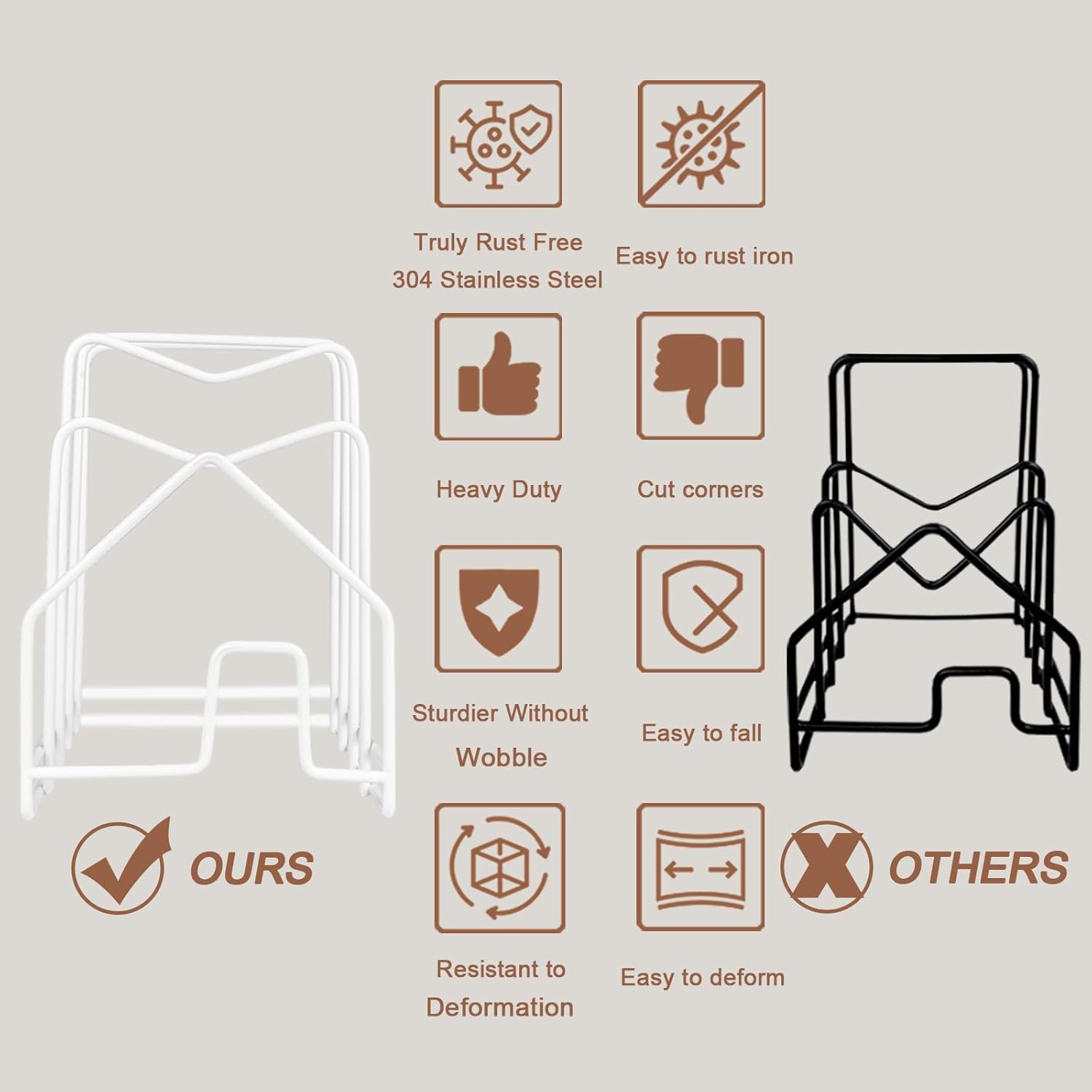 - BUILT TO LAST CUTTING BOARD RACK: made of always rust free 304 stainless steel to withstand daily use while lasting for years. The round edge design helps protect against scratches, and the anti-skid pads keeps everything firmly in place