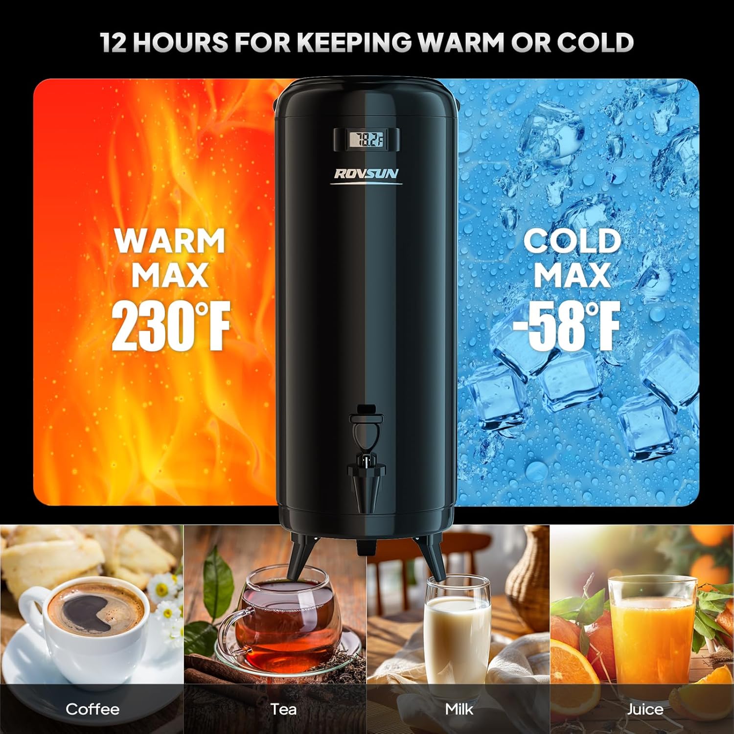 - 【Premium Insulation】 Engineered with triple-layer insulation technology and a spiral-sealed lid, this beverage dispenser maintains ideal temperatures for hours—keeping hot drinks like bubble tea and coffee hot, and cold beverages chilled. Perfect for busy shops and events where reliable temperature control is a must
