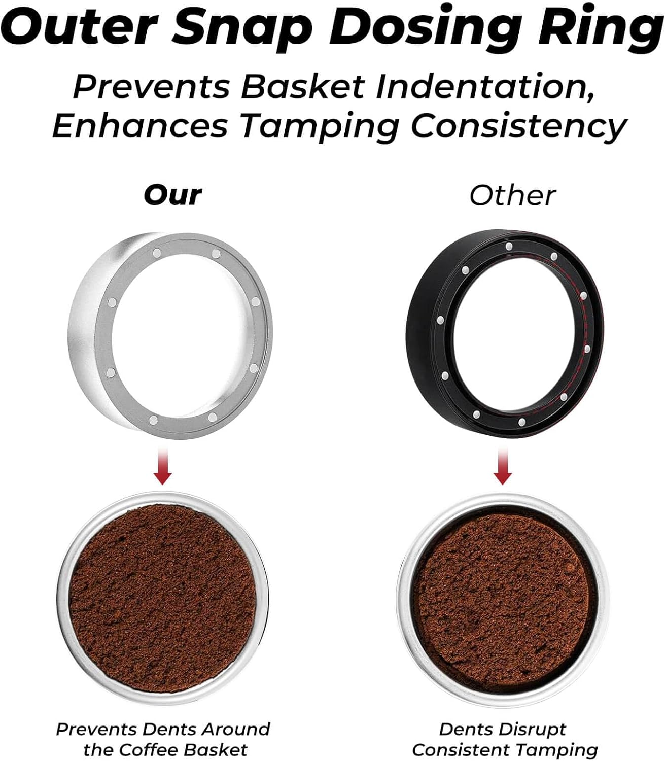 - EASY REMOVAL - Ergonomic arc design on the Coffee Dosing Ring 54mm ensures a comfortable grip and effortless removal after dosing.