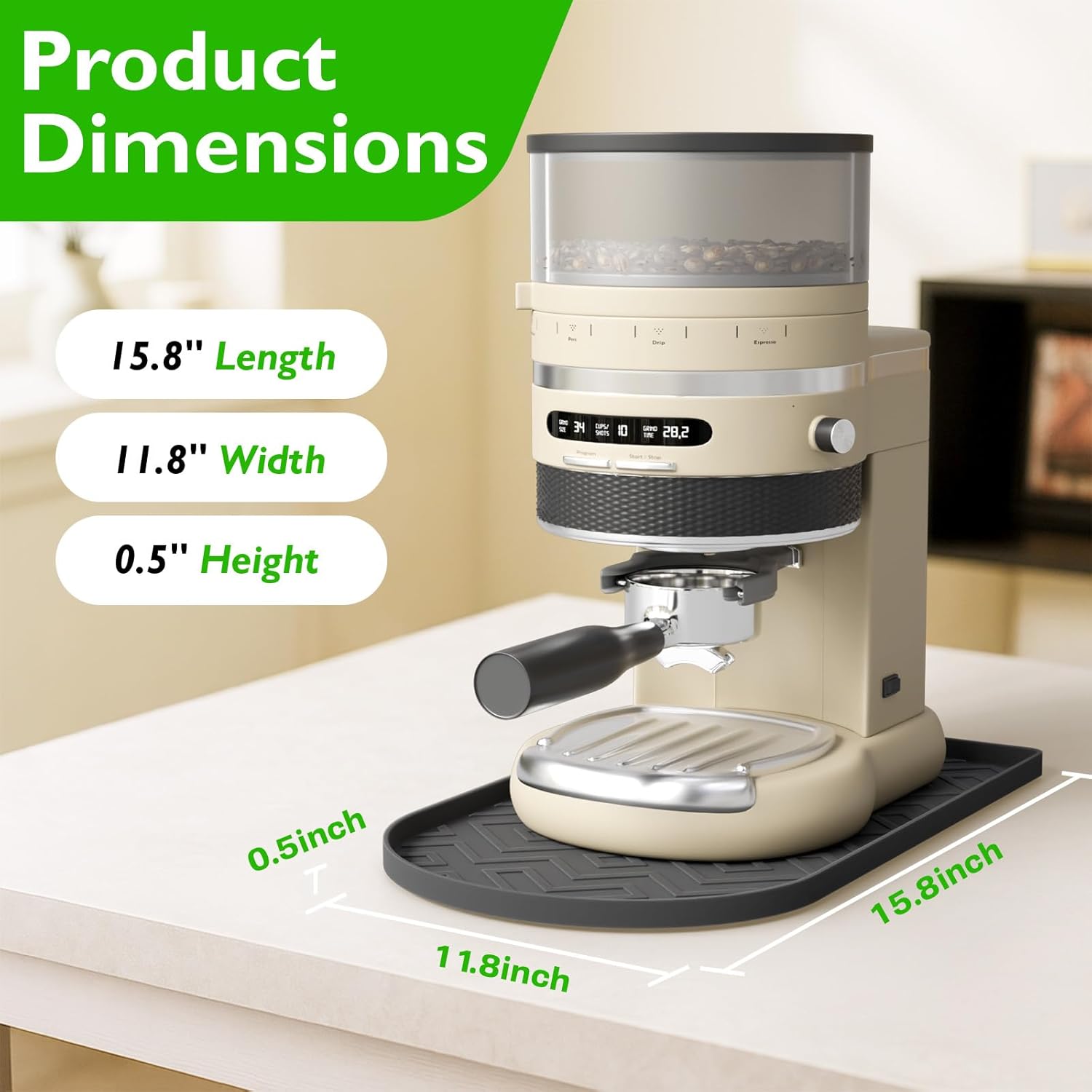 Silicone Coffee Mat,15.8"x 11.8"in Bar Mat for Countertop,Heat-Resistant,Non-Slip,Leak-Proof,Fit for Coffee Maker/Espresso Machine-Black