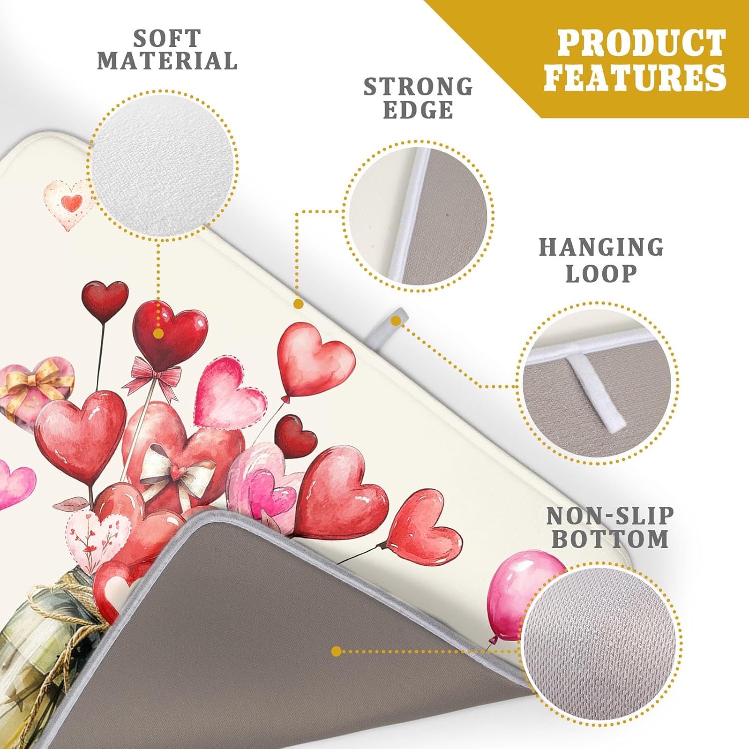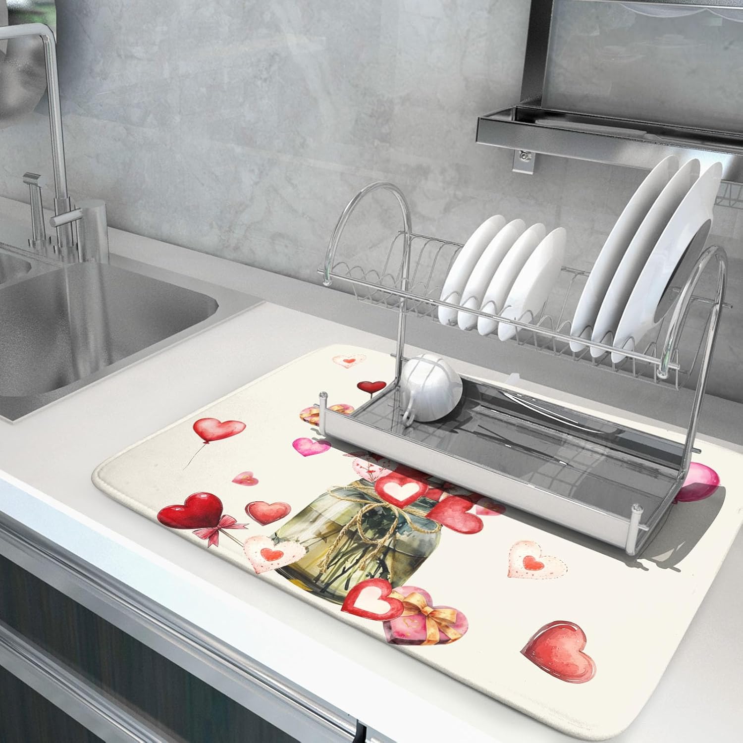 - 1【Good Material】:Our Valentine's Day drying mat is made of high absorbent microfiber and the middle is made of composite spongedurable, reversible do not fade and comfortable. At the same time, it can protect your kitchen counter from scratching by the tableware.
